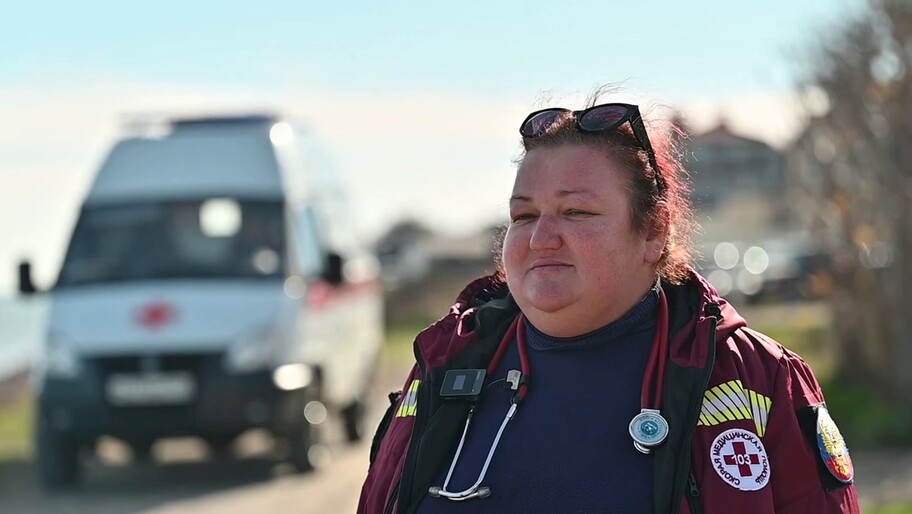 А потом в поселок передали новую машину скорой помощи. «Когда я ее открыла, у меня мурашки по коже пошли от радости. При Украине мы ездили на развалюхах — кривых, без печек, после того как они отслужили свое в Херсоне. А тут — всё новое, укомплектованное. Я впервые почувствовала себя настоящим фельдшером, а не отбросом».
