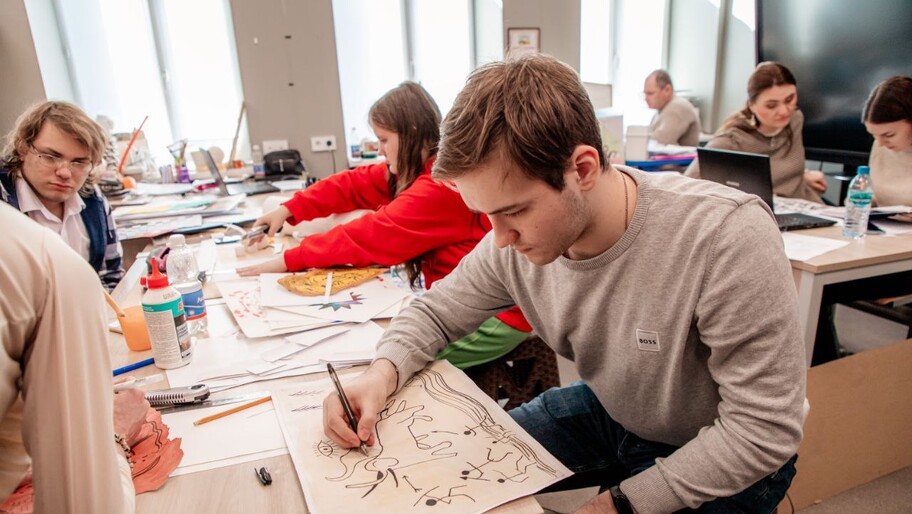 Студенты представили свои работы за первый семестр обучения по живописи, рисунку, композиции, цветоведению, основам проектной графики и основам формообразования.