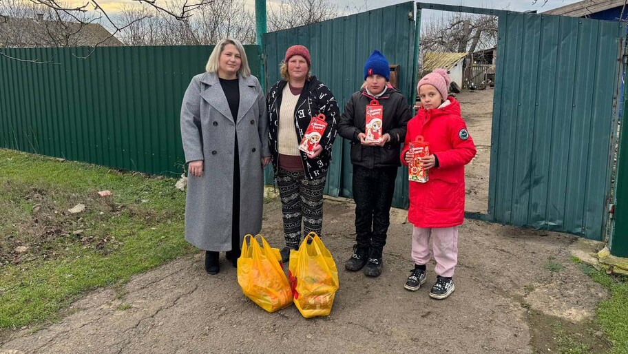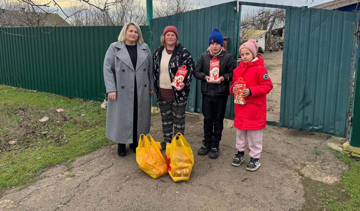 Депутат привезла для семьи продуктовый набор, а детям — сладкие подарки.