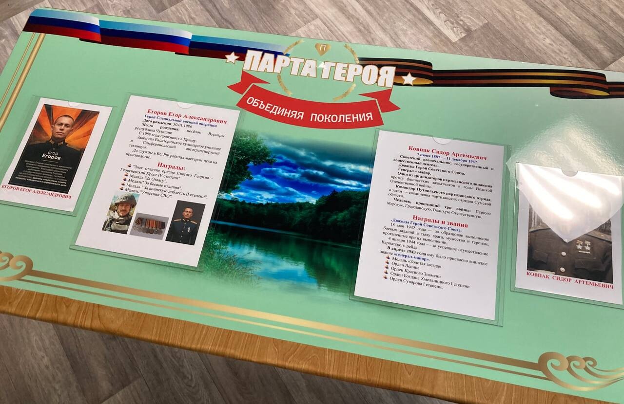 Парта в генической школе №4 посвящена воинам разных поколений — дважды Герою Советского Союза Сидору Ковпаку и участнику СВО Егору Егорову. В Ровенской школе Генического округа парту посвятили ее выпускнику Сергею Кабанову, который погиб в октябре 2024 года в ДНР.