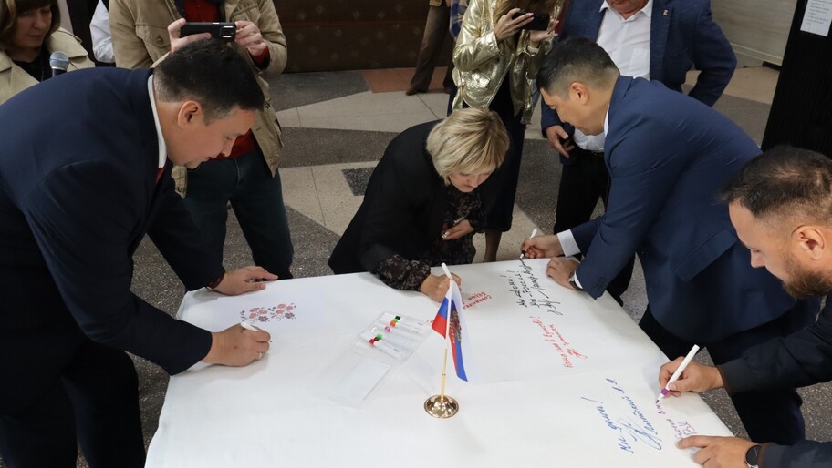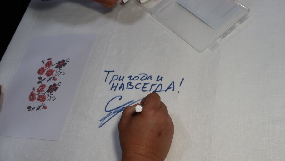 «Для вышивки мы выбрали орнамент конца XIX — начала XX века, потому что это не только украшение, но и символ многоголосого культурного наследия края. Он объединяет разные корни в одну общую ткань — так же, как „Скатерть единения“ объединяет всех нас», — отметила Татьяна Шандра.