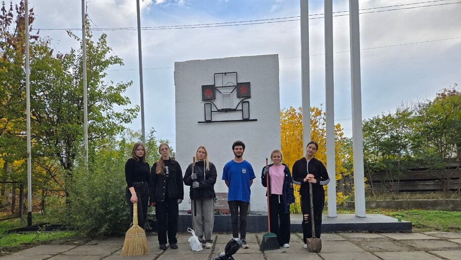 После уборки территории активисты возложили цветы к мемориалу, почтили память героев-водителей и узнали об истории создания памятника.