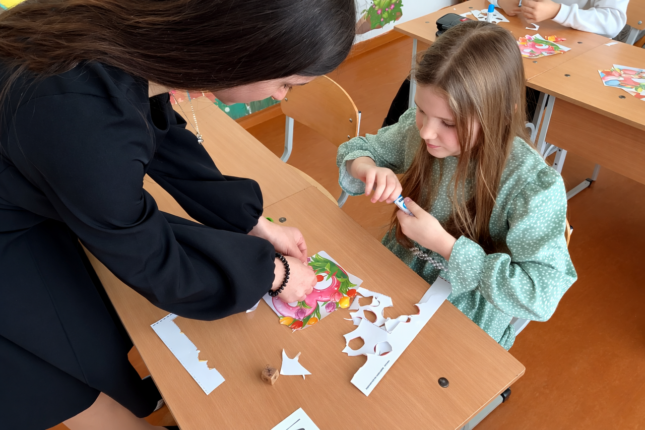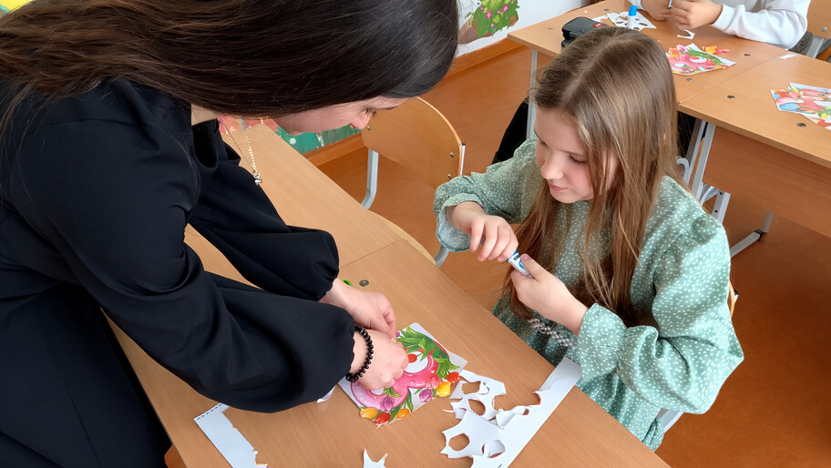 «Малыши старались сделать открытки красивыми, вкладывали в них всю свою теплоту. Мы помогали им аккуратно вырезать и приклеить детали, а также написать пожелания для их мам, бабушек и сестер», — поделилась активистка Движения Первых София.